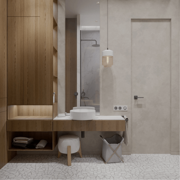 Данный проект — средоточие модных трендов в дизайне интерьера. Современный стиль выбран как функциональная и эстетичная основа, чтобы создать пространство, очень простое в эксплуатации и уборке.
