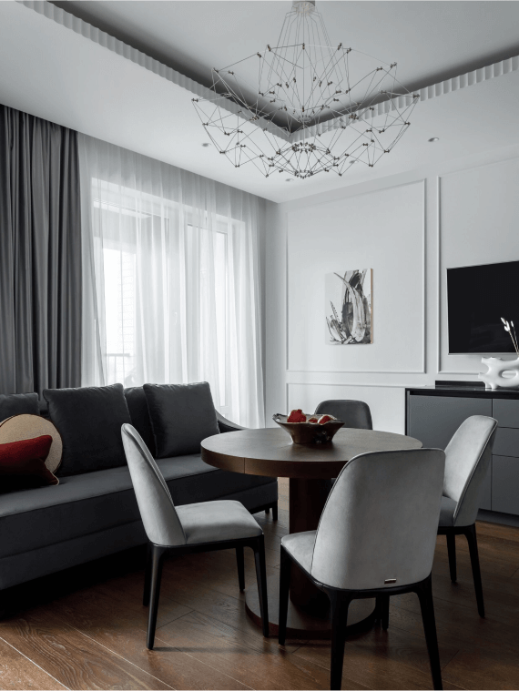 На фото ниже вы можете видеть качество и точность реализации интерьера по завершению ремонта и меблировки. Для «Периметр дизайна» очень важно, чтобы итоговый результат на 100% соответствовал выбранной концепции.